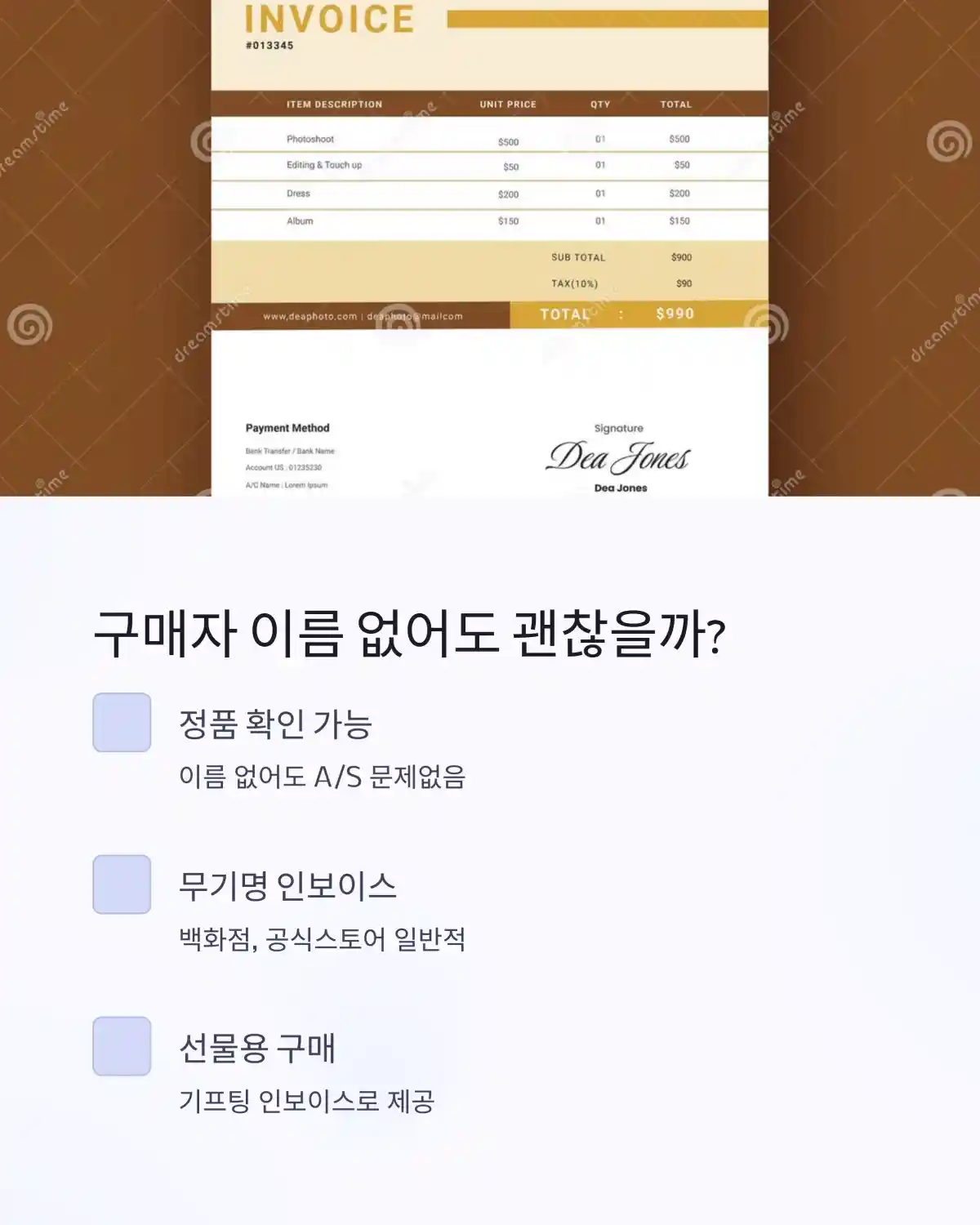 명품 인보이스에 구매자 이름이 없어도 괜찮을까요?